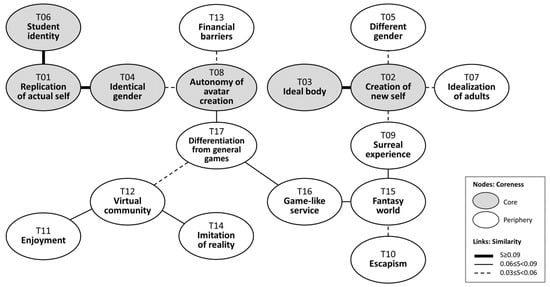 Replication of actual self (T01) exhibited the highest coreness score among the 17 topics, implying adolescent female users want their avatars’ appearances to resemble the users’ actual appearances. This tendency was often associated with the users’ satisfaction with the identity traits they possessed in real life. Most of the interviewees expressed a desire to designate their avatars’ occupation as “student”, akin to their own status (T06), mainly because they were content being students. Some of them mentioned the burden of being an adult, associating it with the duty of going to work. Additionally, some participants opted to remain as teenage students in the virtual world because it offered a sense of comfort and familiarity that mirrored their real-life roles.
