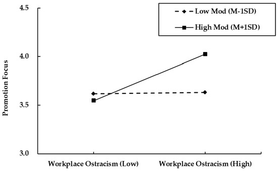 | Workplace ostracism × Visionary leadership → Promotion focus → Proactive behavior | Visionary leadership (+1SD) | 0.049 | 0.015 | [0.022, 0.082] |