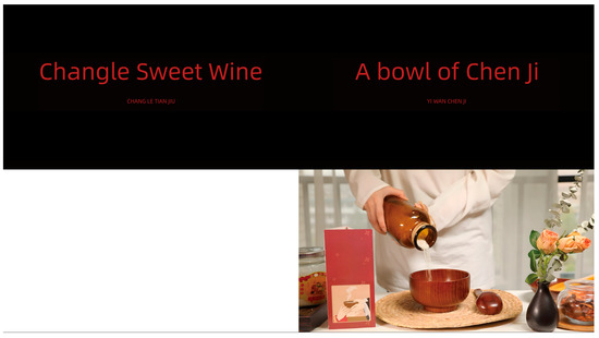 Ad 1: A rational ICH advertisement, “Cinnamon wine with fragrance”, mainly demonstrating methods for cooking with sweet wine. In the video, the raw materials, processing crafts, and finished product are repeatedly shown, emphasizing the health benefits, lack of additives, and delicious taste of sweet wine (Figure 1).