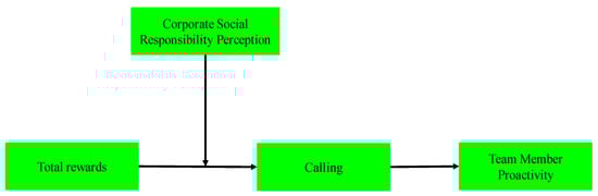 In summary, the interaction of total rewards and the perception of CSR can enhance employees’ sense of calling and stimulate the proactivity of team members through the sense of calling, creating a cycle of motivation and engagement that benefits both the employees and the organization (Figure 1). Consequently, our hypothesis proposes the following: