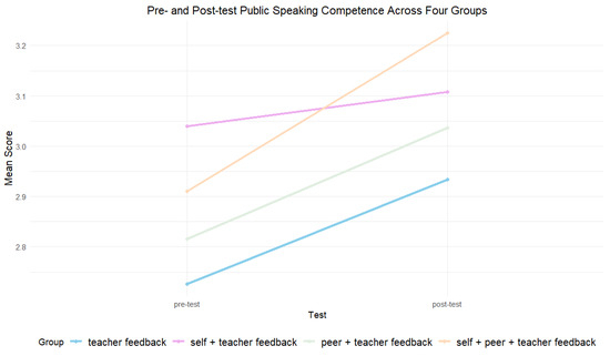 3.4. Impact of Feedback Source on Students’ Public Speaking Performance