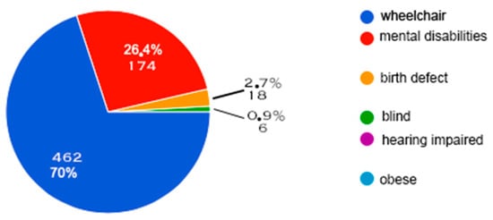 In terms of the contemporary perception of disability by the younger generation, analyzed according to the principles of social psychology [], our results, illustrated in Figure 1, show that the majority of the sample (70%) is based on an immediate perception, often focus on the visible disability and/or the associated technical aids.