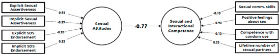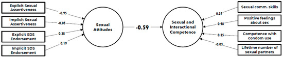 The contributions of the selected variables to the latent construct of sexual attitudes were found to vary considerably. The largest contribution was made by Explicit SA, followed by Explicit SDS, while the contributions of both implicit variables were small. The findings with regard to explicit attitudes aligned with earlier research on the associations of attitudes and SAIC [18,30,31,34,42,43].