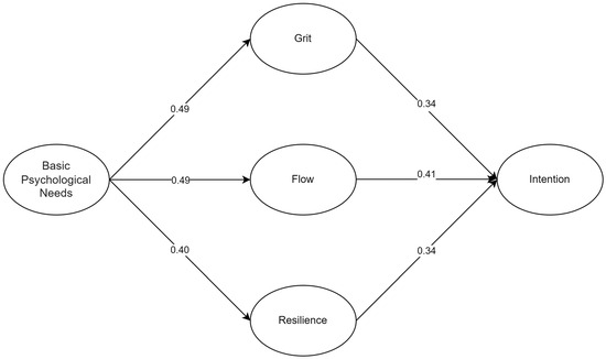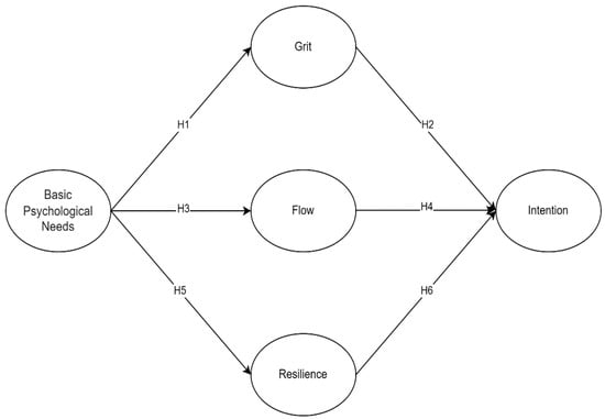 Research has shown that basic psychological needs (BPNs) significantly predict resilience. Studies by Liu and Huang [39] and Neufeld and Malin [67] have demonstrated that when learners’ psychological needs for autonomy, competence, and relatedness are met, they develop higher levels of resilience, enabling them to effectively cope with challenges. Furthermore, resilience has been found to predict the intention to use AI in learning. Lee and Hancock [68], Versteeg et al. [69], and Zheng et al. [70] highlighted that resilient learners are more likely to adapt positively and engage with new technologies. Based on these findings, this study hypothesizes the following: