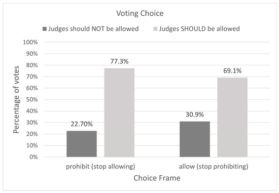 The dependent measure was a dichotomous “yes/no” choice common among many real ballot measures (“Shall the State adopt this measure?”). The default choice was counterbalanced for control purposes. In the allow condition, a “yes” vote would allow judges to begin ordering consecutive life sentences in addition to concurrent life sentences, whereas a “no” vote would continue to prohibit them from doing so, allowing concurrent life sentences only (i.e., the default choice). In the prohibit condition, a “yes” vote would prohibit judges from ordering consecutive life sentences, whereas a “no” vote would allow judges to continue to order consecutive life sentences in addition to concurrent life sentences (i.e., the default choice). For exploratory purposes, participants were also asked to rate their degree of support on a 7-point scale (1 = Strongly Oppose to 7 = Strongly Support). (See Sections S1 and S2 for stimuli and supplementary analyses).