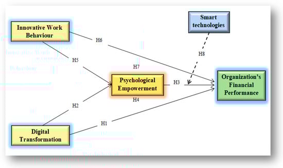 Therefore, employees become more psychologically empowered and well-suited to implementing the full possibilities of digital technologies, and they are funded to improve the quickness and productivity of an organization. Finally, employee empowerment is a serious issue in mediating the effect of DT on the OFP; it stimulates the workforce to use digital instruments to realize productivity gains and adequate returns. Business intelligence instruments allow employees to view performance metrics and marketplace tendencies. This information will enable employees to obtain results, thus increasing their self-confidence or effectiveness (). Productivity is also improved by the mechanization and digitization of daily jobs. Employees can realize the logic of achievement if they perceive the progressive effects of technology. In other words, it can be said that psychological empowerment inspires workers to feel free and valued in their profession. This ability to liberty promotes enormous problem-solving ideas and creativity, which are essential to give the whole possibility of digital instruments (). When free workers participate in the progressive application of DT and cost value, these consequences positively affect the financial performance of an organization. Psychological empowerment fills the gap between DT adaptability and economic success by improving workers’ inspiration ().
