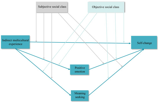 Social class refers to groups of people’s resources and their perceived rank within the social hierarchy (Kraus et al., 2009). Social class is divided into objective and subjective social class, with the former consisting of indicators such as income level and educational attainment, and the latter defined as a kind of perception of one’s social class (Kraus et al., 2009). Numerous studies have emphasized the important role of social class in facilitating self-change. One study found that people of high social class enjoy richer social resources and will focus on self-development (Lee et al., 2018), which is the main component of self-change. Furthermore, the higher the social class, the easier it is to generate positive emotions such as self-orientated satisfaction, pride, and entertainment (Piff & Moskowitz, 2018). In addition, social class has a strong impact on a person’s sense of self; people in low social classes tend to be less confident in themselves and more likely to be dependent on or focused on others (Hooker & Algoe, 2022), and this may diminish an individual’s focus on self, thus reducing their willingness to change themselves. Based on the above research, we hypothesize that social class may moderate the relationship between indirect multicultural experiences and self-change. Given the unclear direction, we do not make specific predictions and remain open to exploring the moderating effect of social class.
