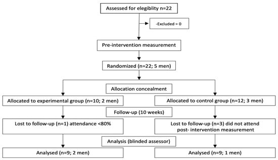 A total of 18 young adult university students completed their participation in this study; overall, significant differences in terms of age were only found between the experimental and control groups. Table 1 shows a description of the baseline values of the participants.