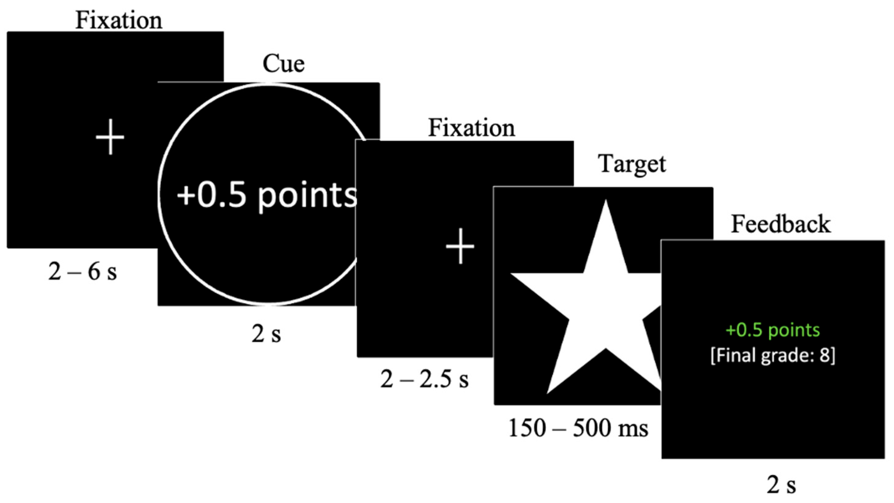 - Oldham, S., Murawski, C., Fornito, A., Youssef, G., Yücel, M., & Lorenzetti, V. (2018). The anticipation and outcome phases of reward and loss processing: A neuroimaging meta-analysis of the monetary incentive delay task. Human Brain Mapping, 39, 3398–3418. [Google Scholar] [CrossRef]