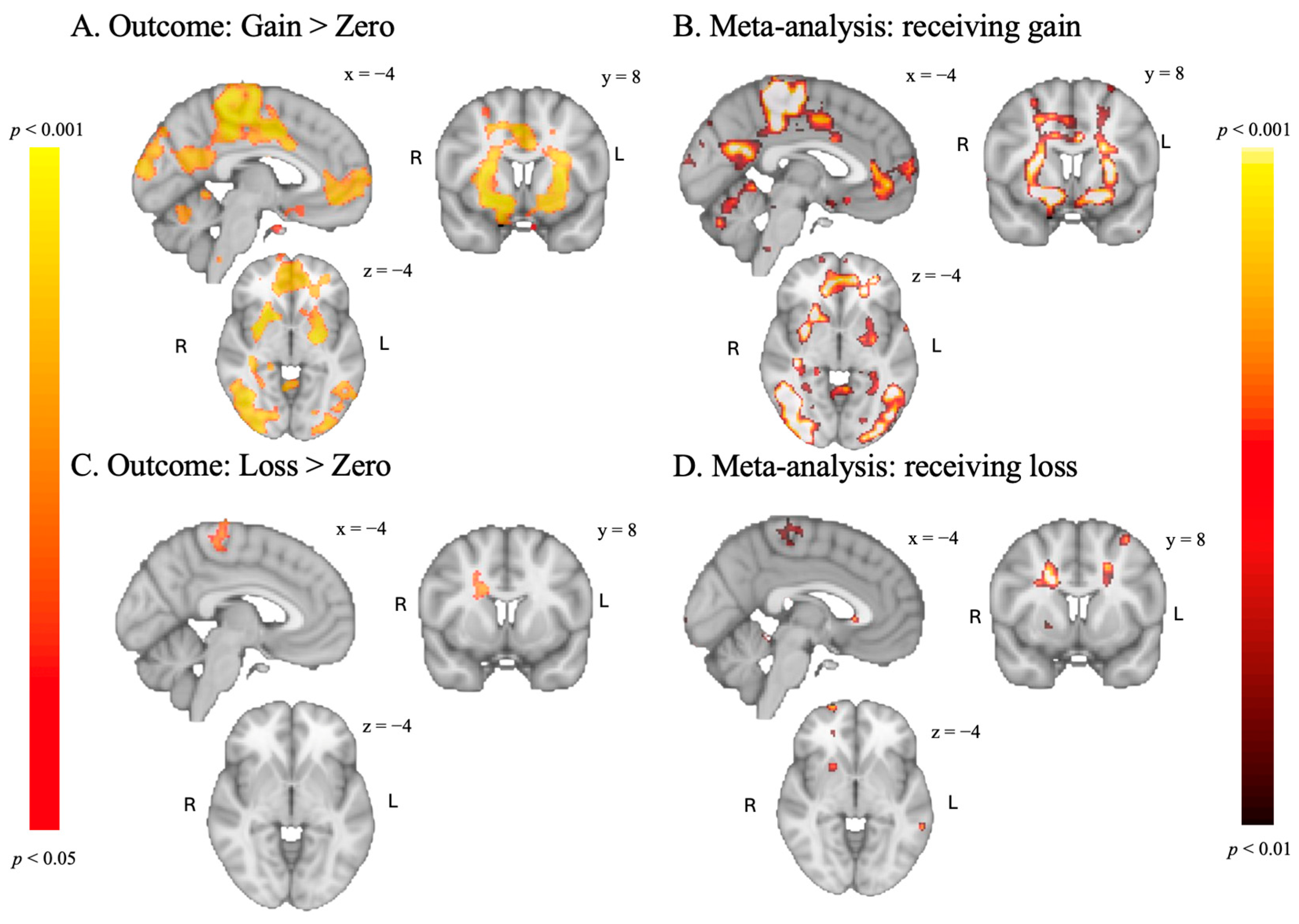 - Liu, X., Hairston, J., Schrier, M., & Fan, J. (2011). Common and distinct networks underlying reward valence and processing stages: A meta-analysis of functional neuroimaging studies. Neuroscience and Biobehavioral Reviews, 35(5), 1219–1236. [Google Scholar] [CrossRef] [PubMed]