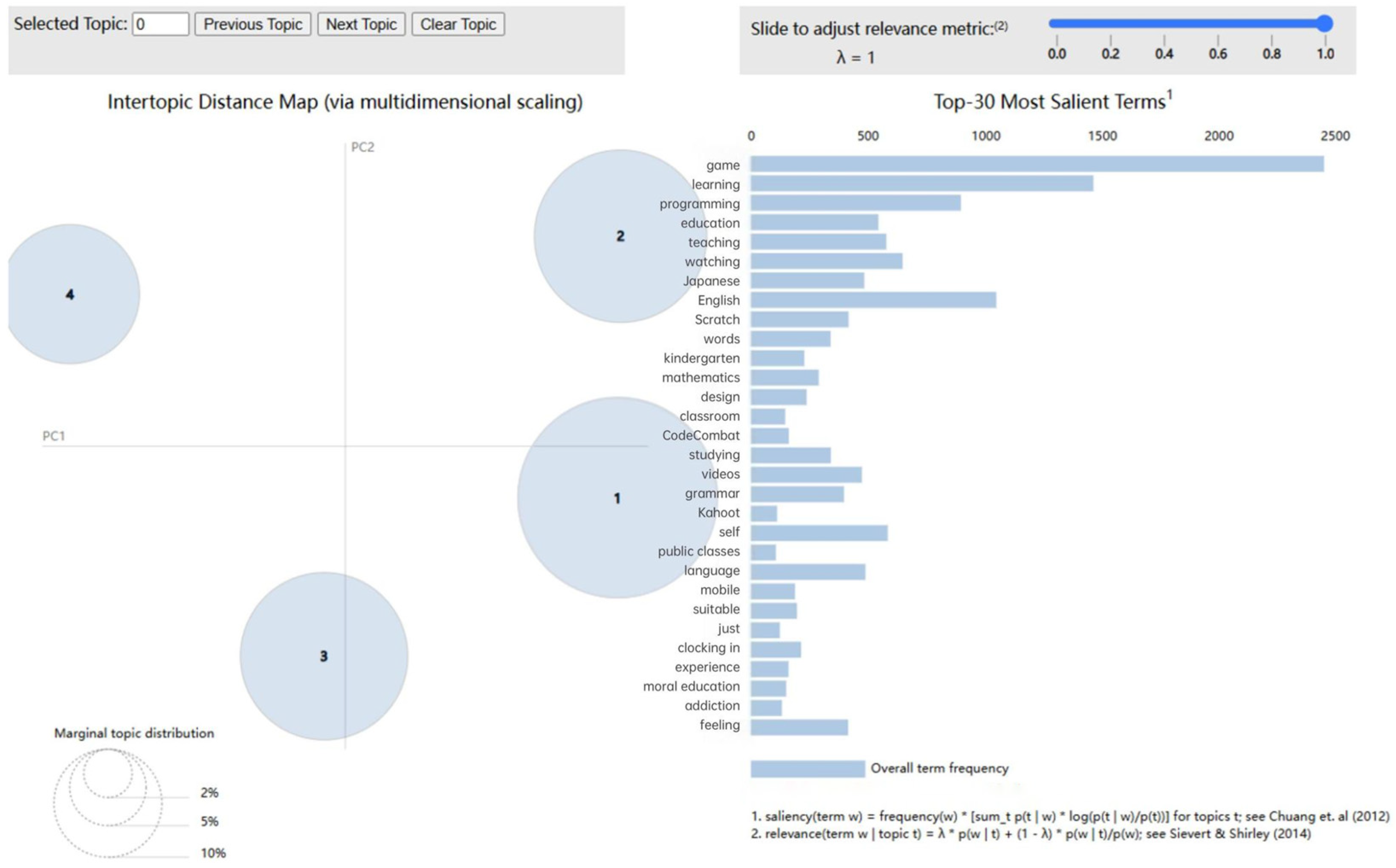 - Sievert, C., & Shirley, K. (2014, June 27). LDAvis: A method for visualizing and interpreting topics. Workshop on Interactive Language Learning, Visualization, and Interfaces (pp. 63–70), Baltimore, MD, USA. [Google Scholar]