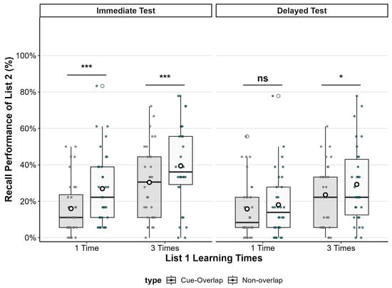 3.1. Cued Recall Performance for List 2
