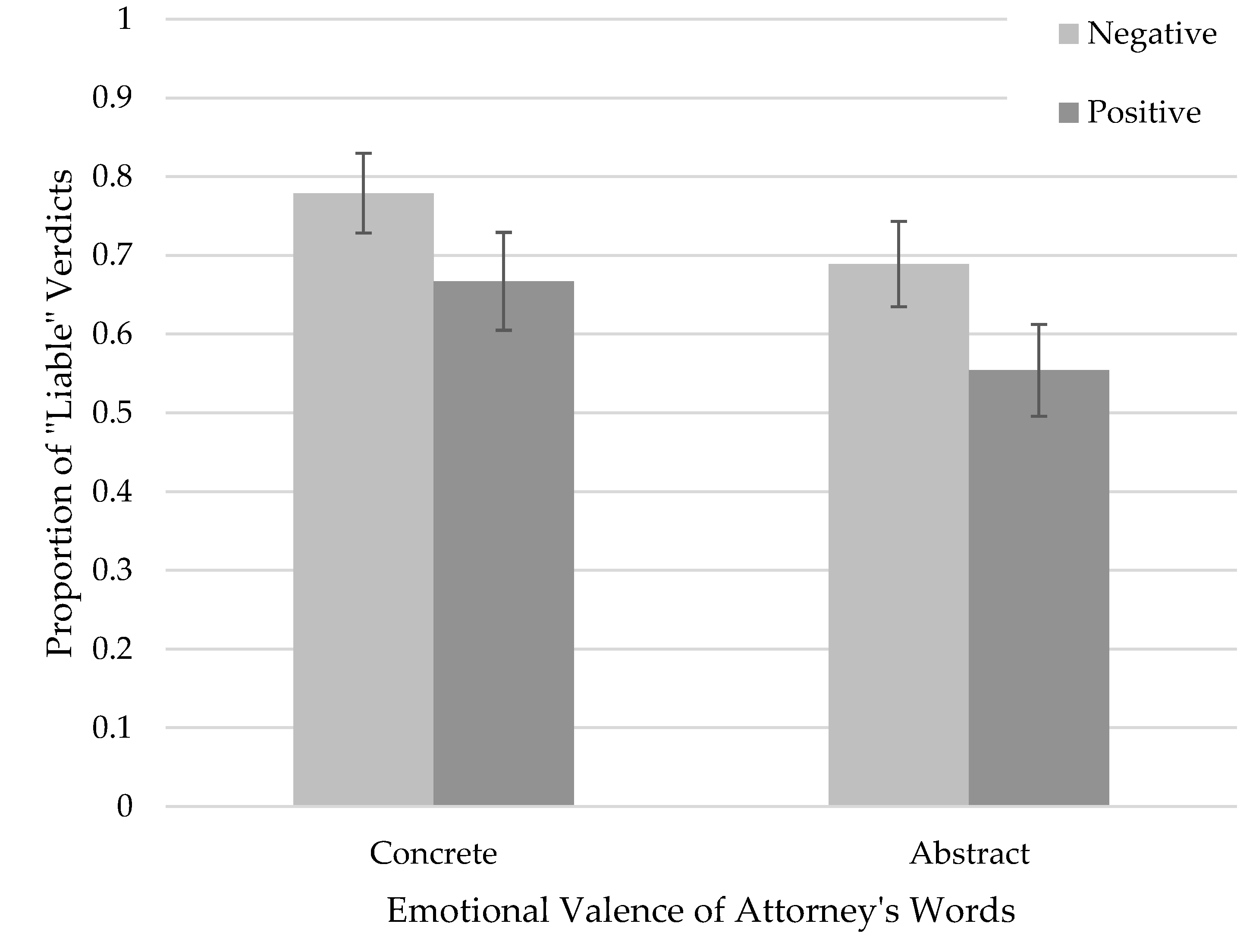 Healy, J.; Miller, M.K.; Yang, Y. Words Matter: How Attorney Language Abstraction and Emotional Valence Shape Juror Decision-Making. Behav. Sci. 2025, 15, 1355. https://doi.org/10.3390/bs15101355