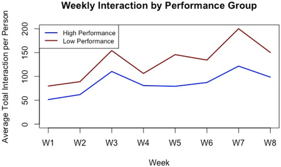Learning interaction pattern among high vs. low performance groups (n = 31).