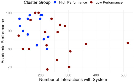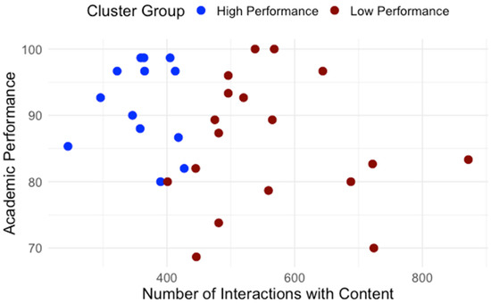 - Cluster 2: Low-performance group with higher engagement (n = 18).