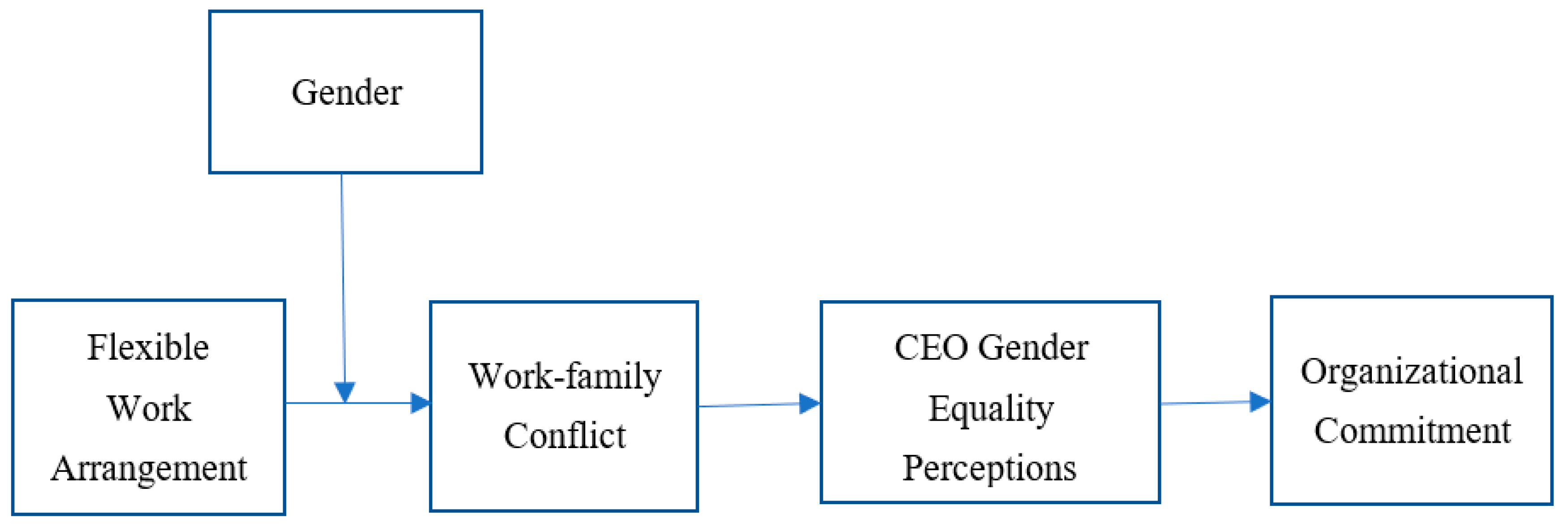 2.2. FWAs, Work–Family Conflict, CEO Gender Equality Perception, and Organizational Commitment