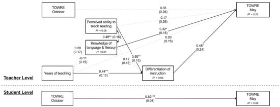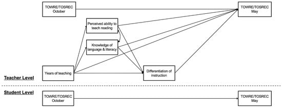 - Porter, S. B., Odegard, T. N., Farris, E. A., & Oslund, E. L. (2024). Effects of teacher knowledge of early reading on students’ gains in reading foundational skills and comprehension. Reading and Writing: An Interdisciplinary Journal, 37(8), 2007–2023. [Google Scholar] [CrossRef]