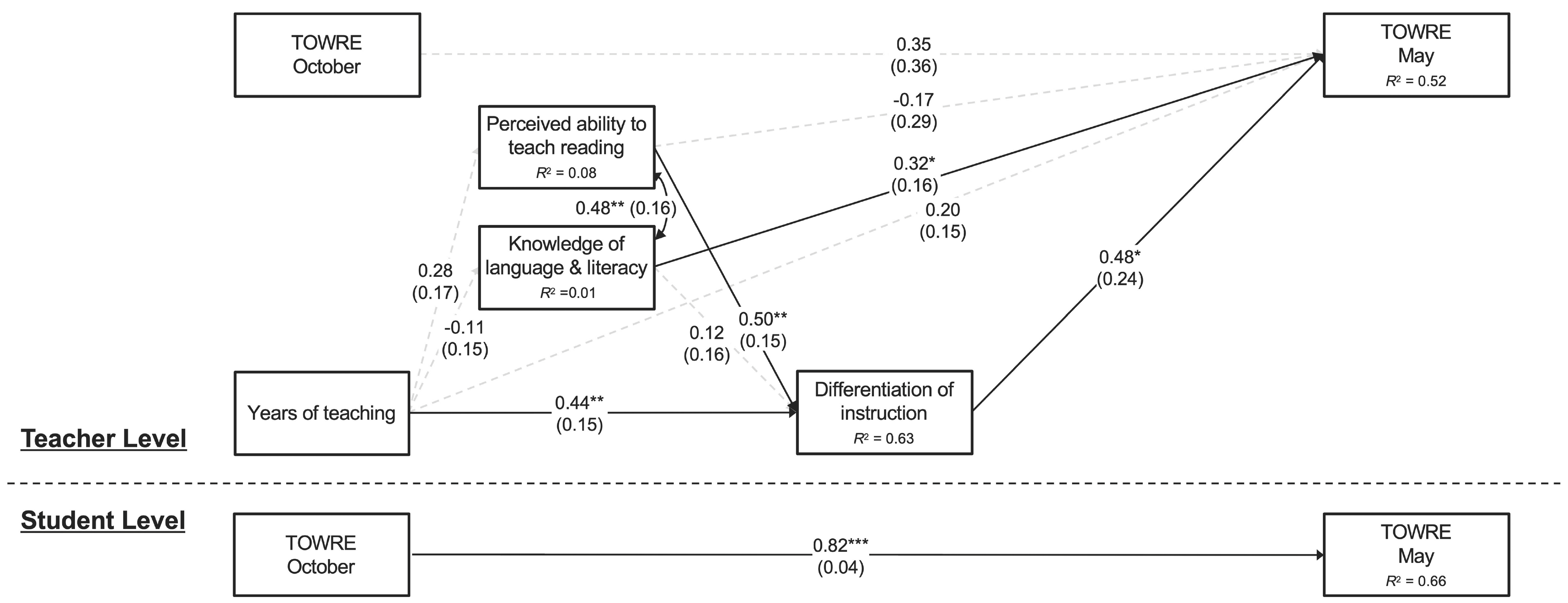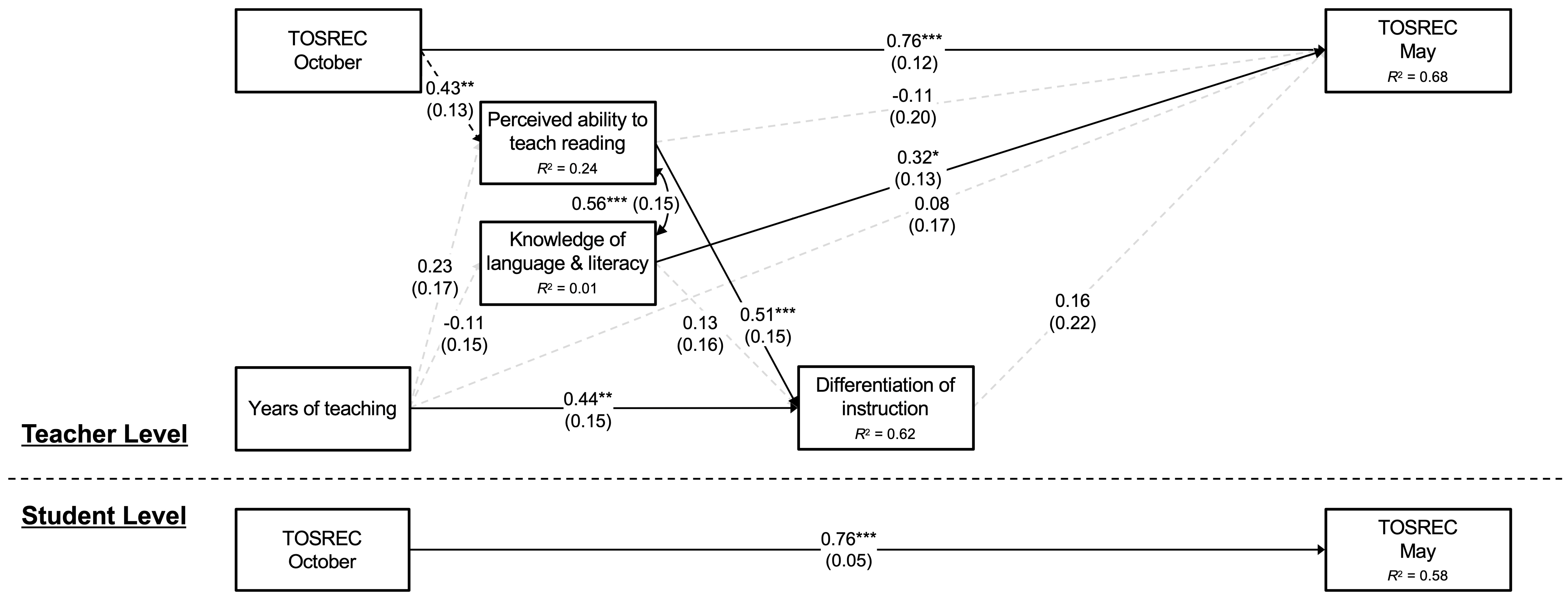 Connecting the Dots: From Teachers’ Perceived Ability to Teach Reading and Their Knowledge of Language and Literacy Concepts to Students’ Reading Growth