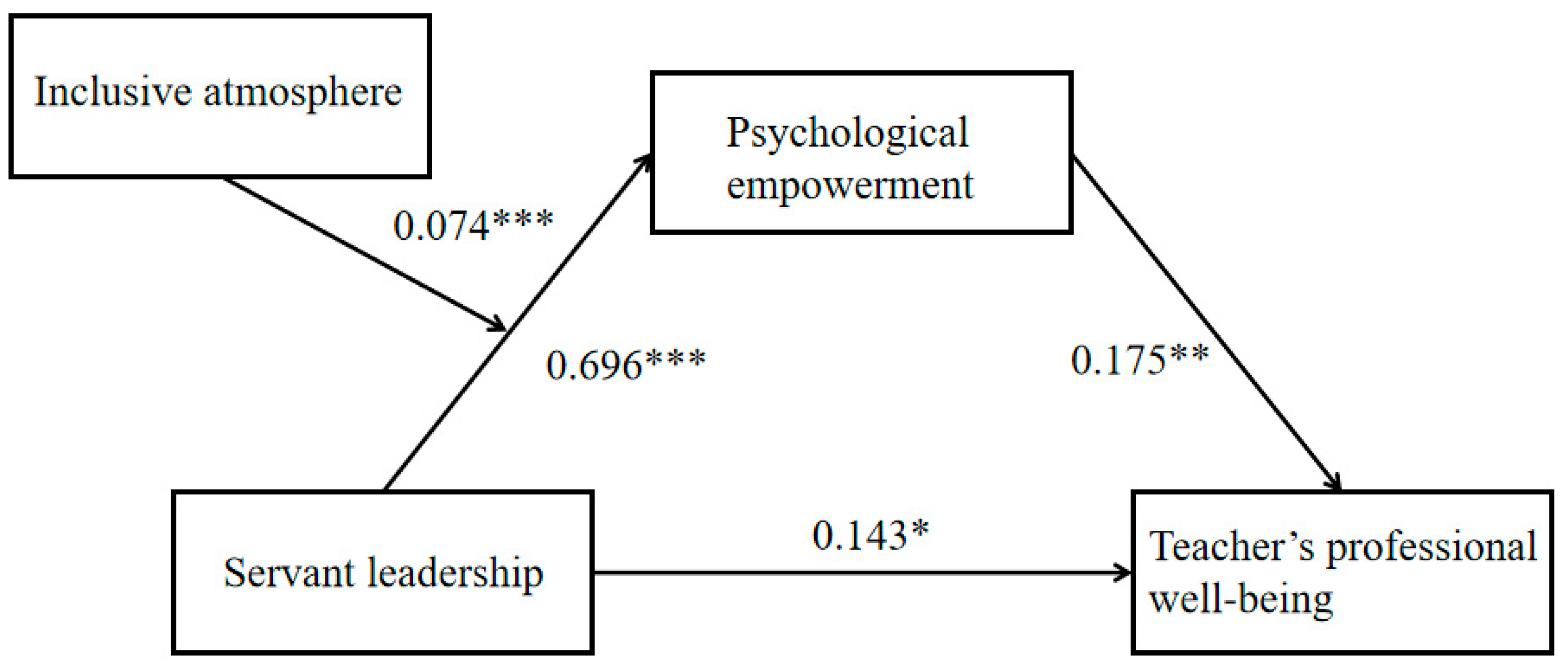 Chicago/Turabian StyleYu, Dongqing, Wenxin Yue, Shuang Hao, Dengyin Li, and Qiurong Wu. 2025. "The Influence of Servant Leadership on the Professional Well-Being of Kindergarten Teachers: A Moderated Mediation Model" Behavioral Sciences 15, no. 10: 1412. https://doi.org/10.3390/bs15101412