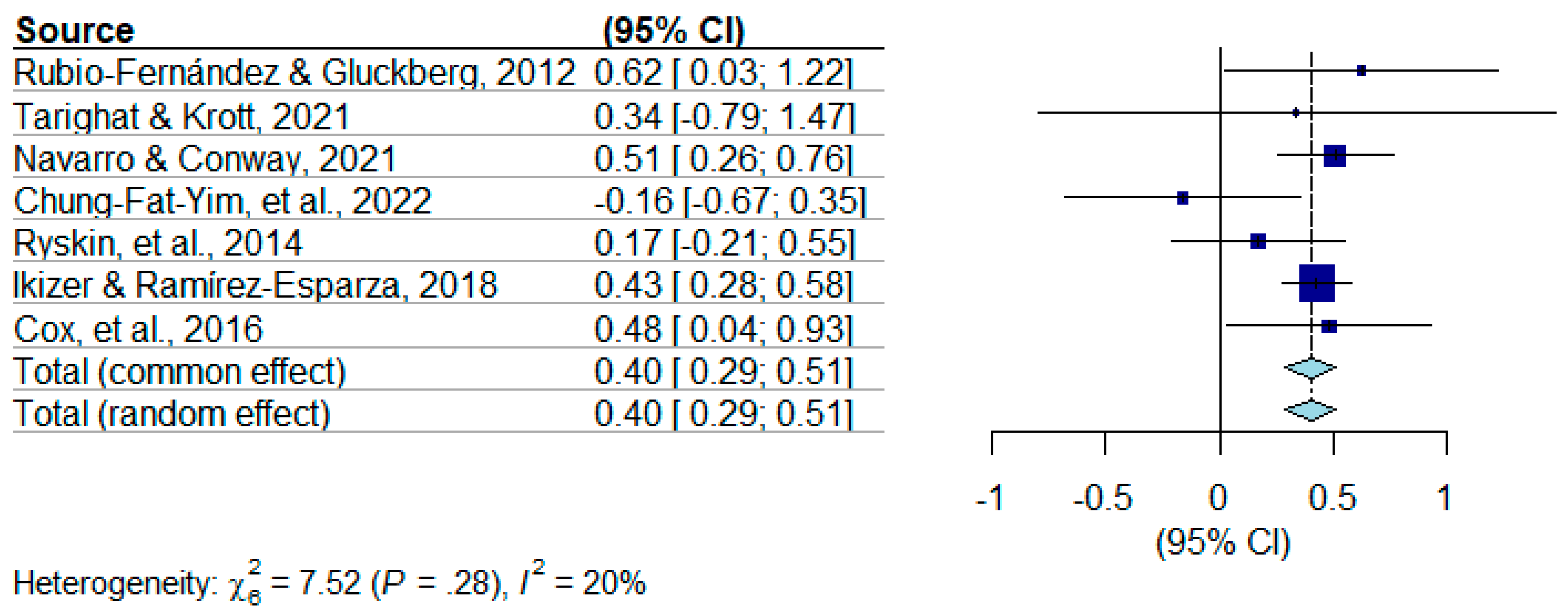 Ikizer and Ramírez-Esparza (2018) | Social Flexibility | 465 | 206 | Bilingual = 37 Monolingual = 41.12 | Yes | <0.001 | 0.427 |