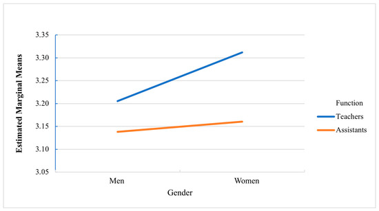 The presence of this interaction highlights the importance of adopting more nuanced approaches when analyzing gender differences in the educational context, recognizing that professional roles act as a significant moderator of these differences. This has important implications for the development of institutional strategies that consider gender differences and how they manifest differently according to specific roles within the educational system.