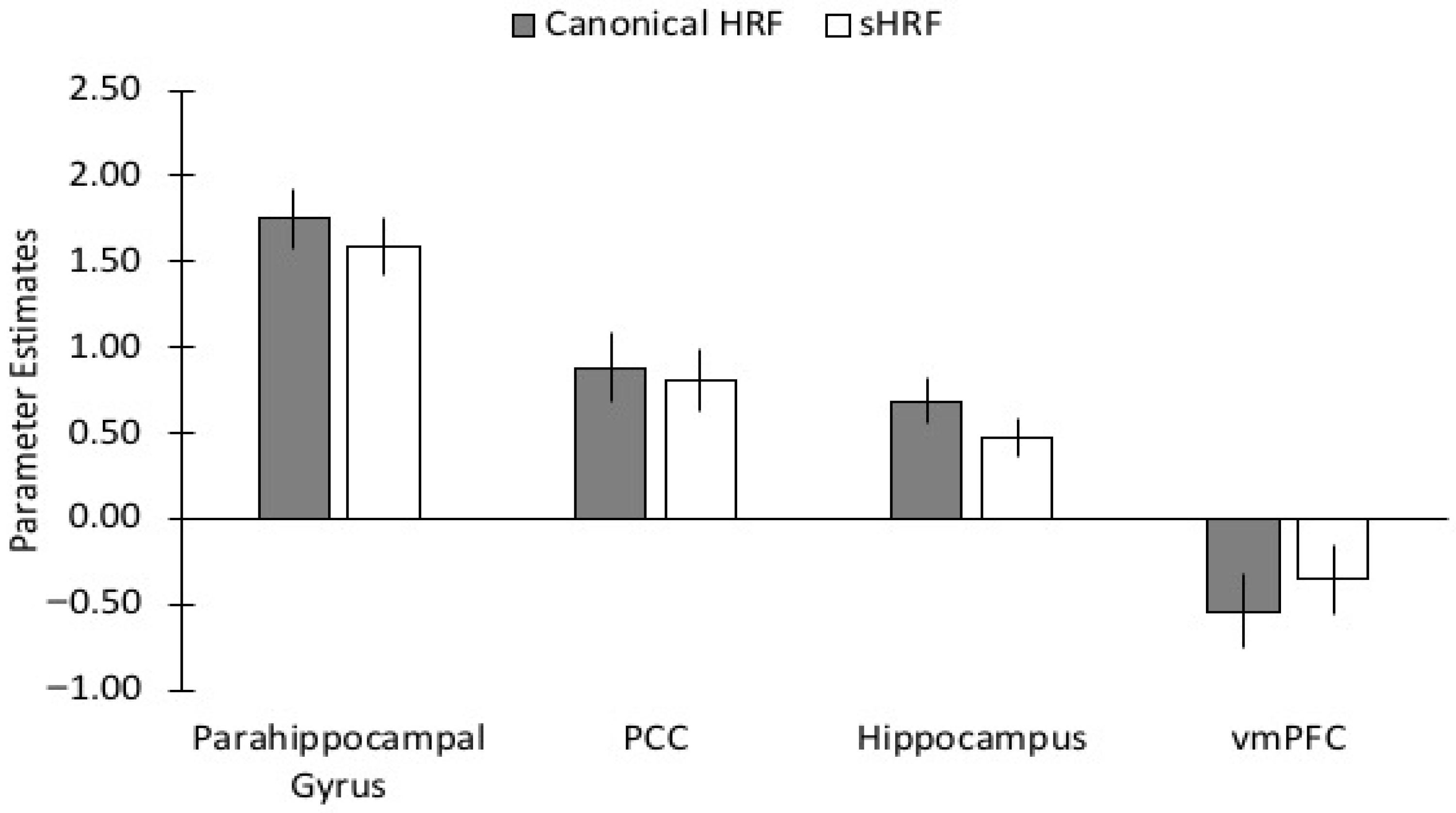 3.5. Comparison of Canonical HRF vs. Subject-Specific HRF During Encoding