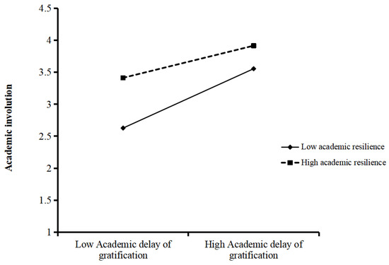 | Academic delay of gratification × academic resilience | −0.106 | −2.018 * | ||