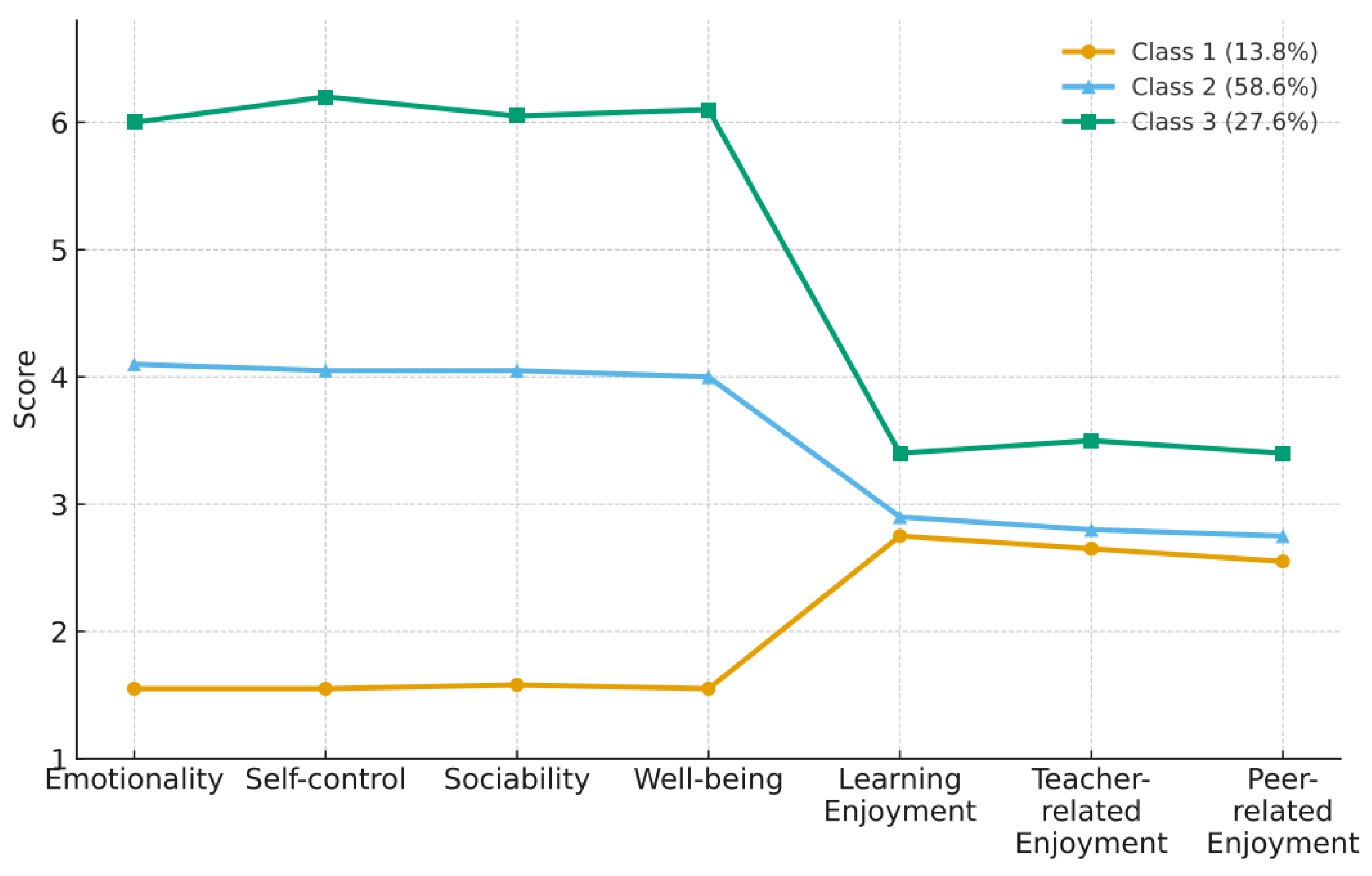 APA StyleXiao, Z., & Jia, J. (2025). The Relationship Between College Students’ Emotional Intelligence, Foreign Language Enjoyment, and L2 Willingness to Communicate: A Variable-Centered and Person-Centered Perspective. Behavioral Sciences, 15(11), 1508. https://doi.org/10.3390/bs15111508