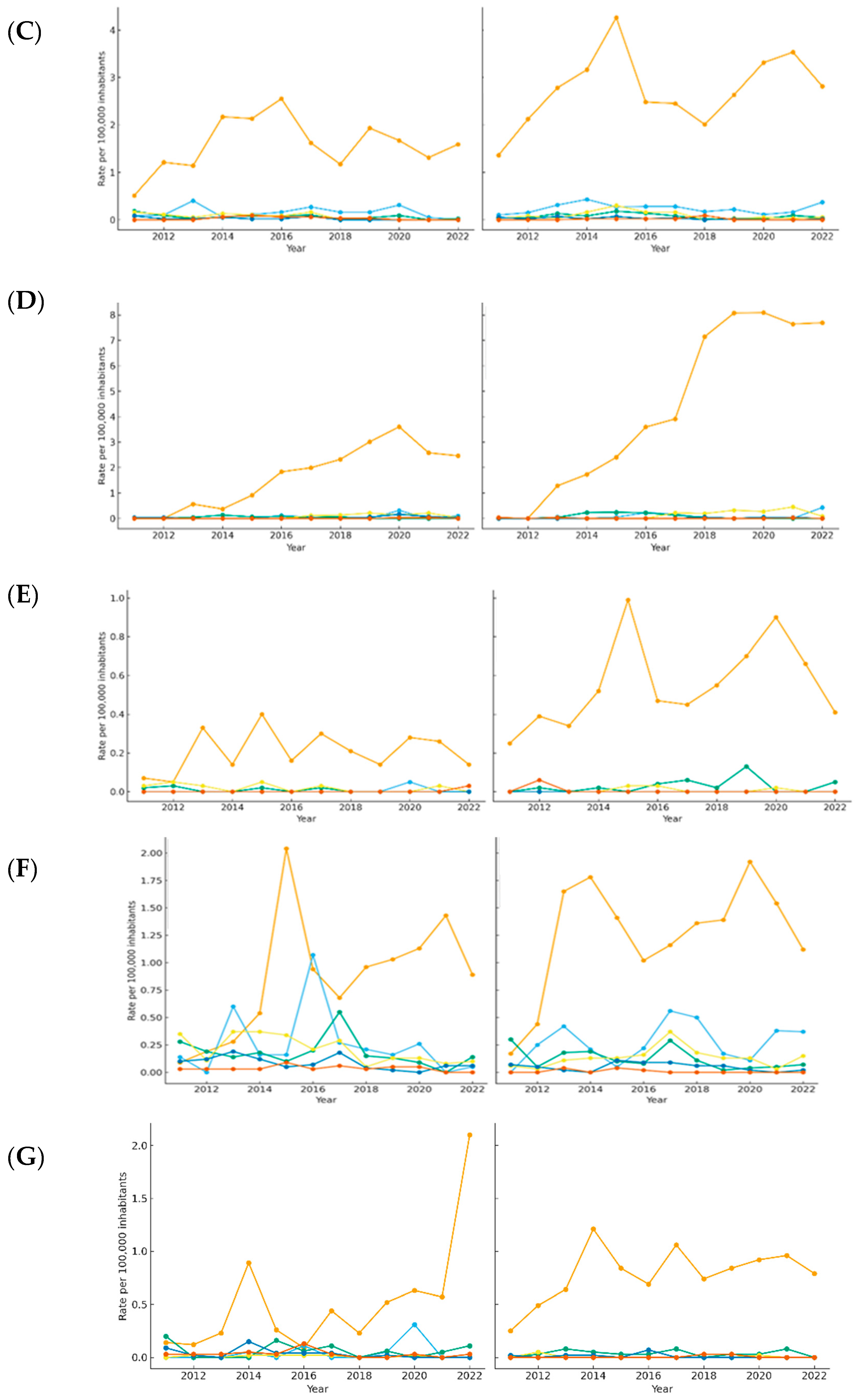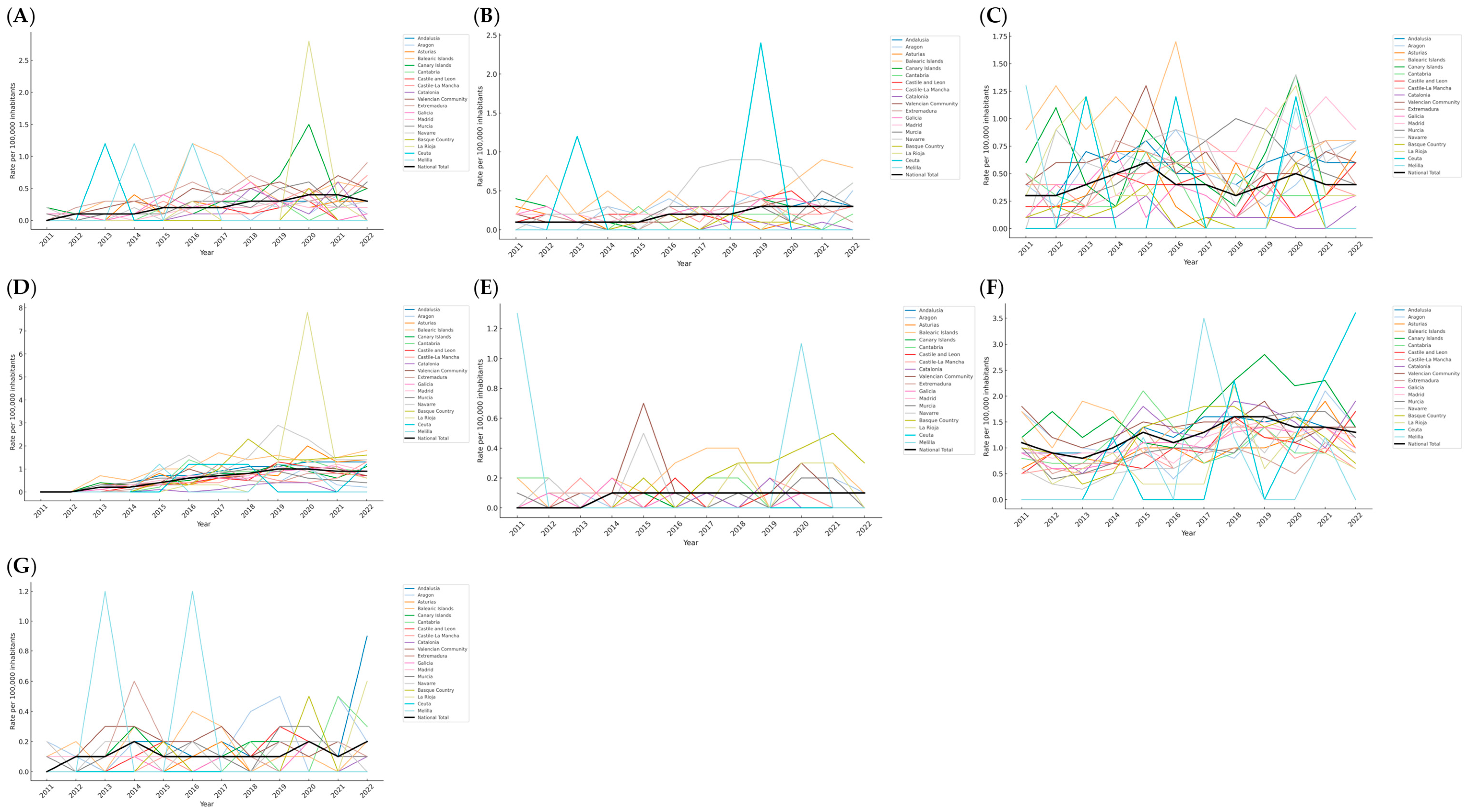 3.1. Annual Evolution of Sexual Crime Rates by Region in Spain