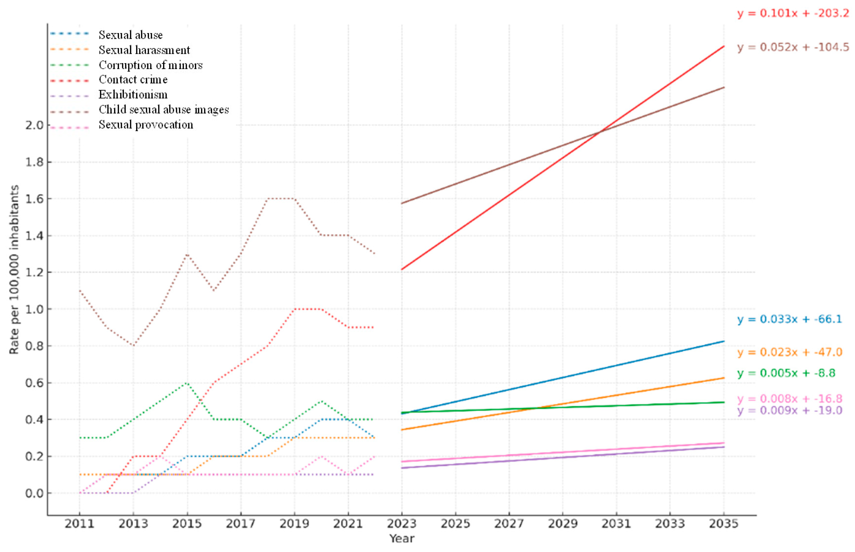 2.4. Projection of Trends and Predictive Modeling of Cyber-Sexual Crime Rates