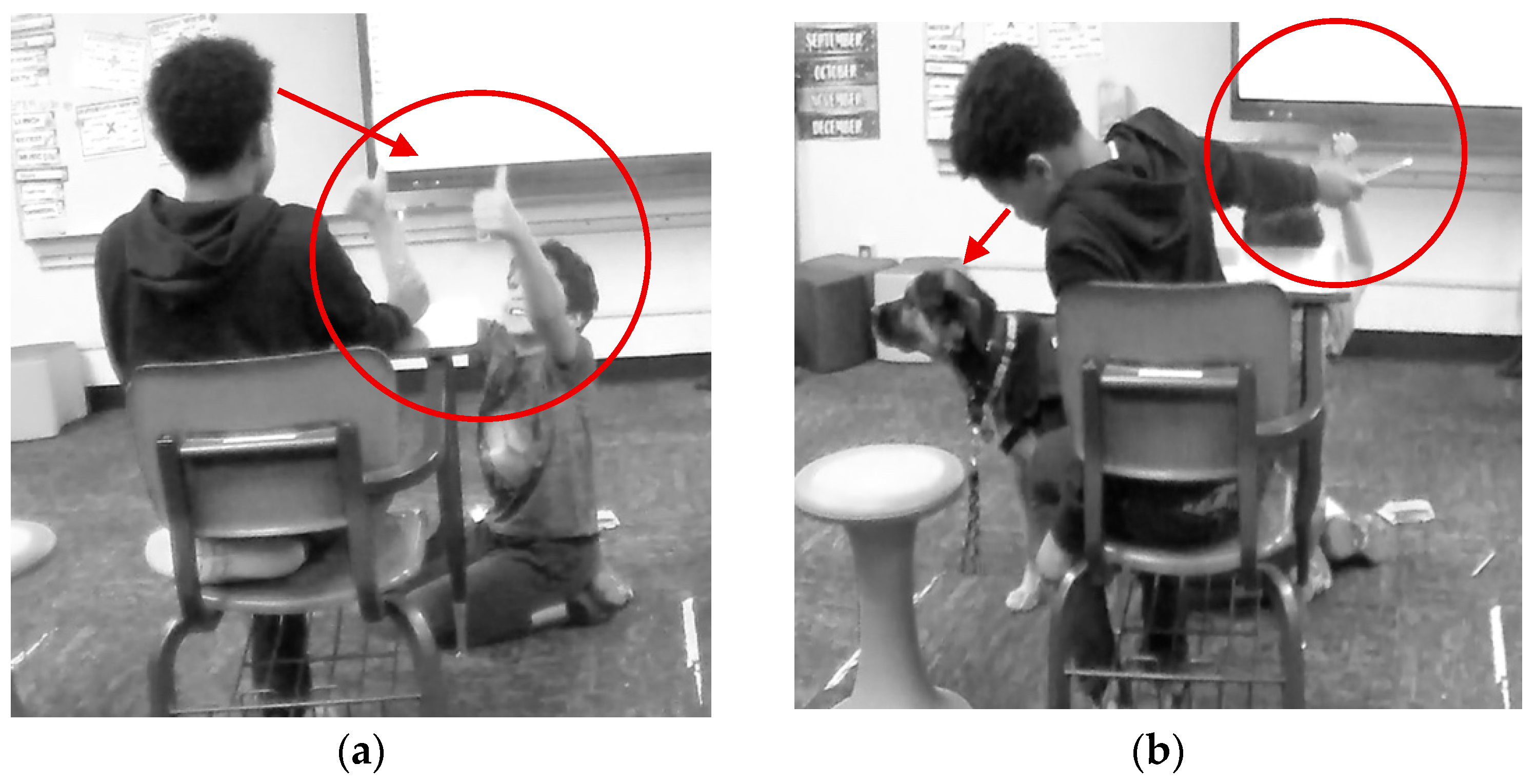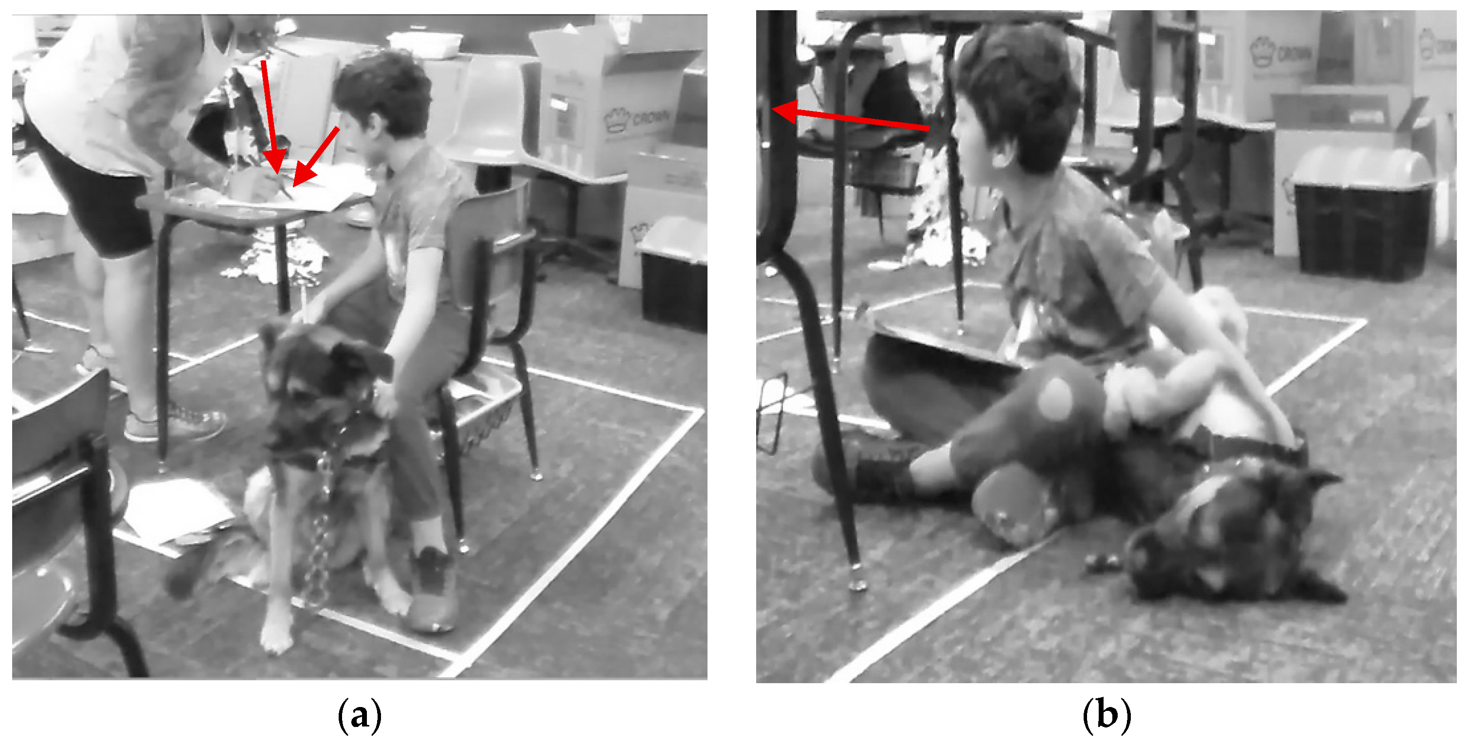 - Anderson, K. L., & Olson, M. R. (2006). The value of a dog in a classroom of children with severe emotional disorders. Anthrozoös, 19(1), 35–49. [Google Scholar] [CrossRef]