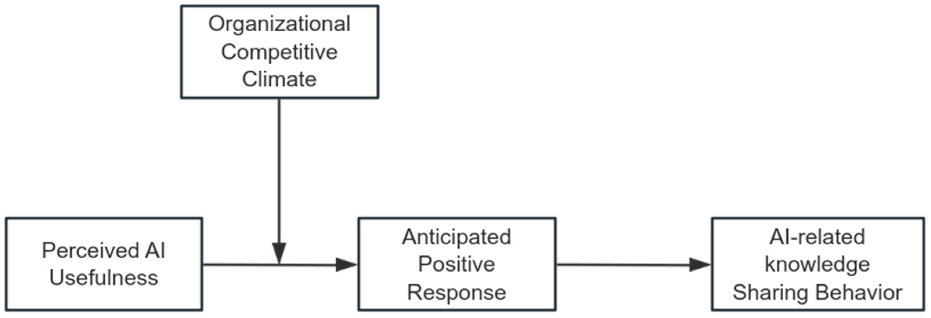 | Perceived AI Usefulness | Anticipated Positive Response | AI-Related Knowledge Sharing Behavior | Organizational Competitive Climate | |