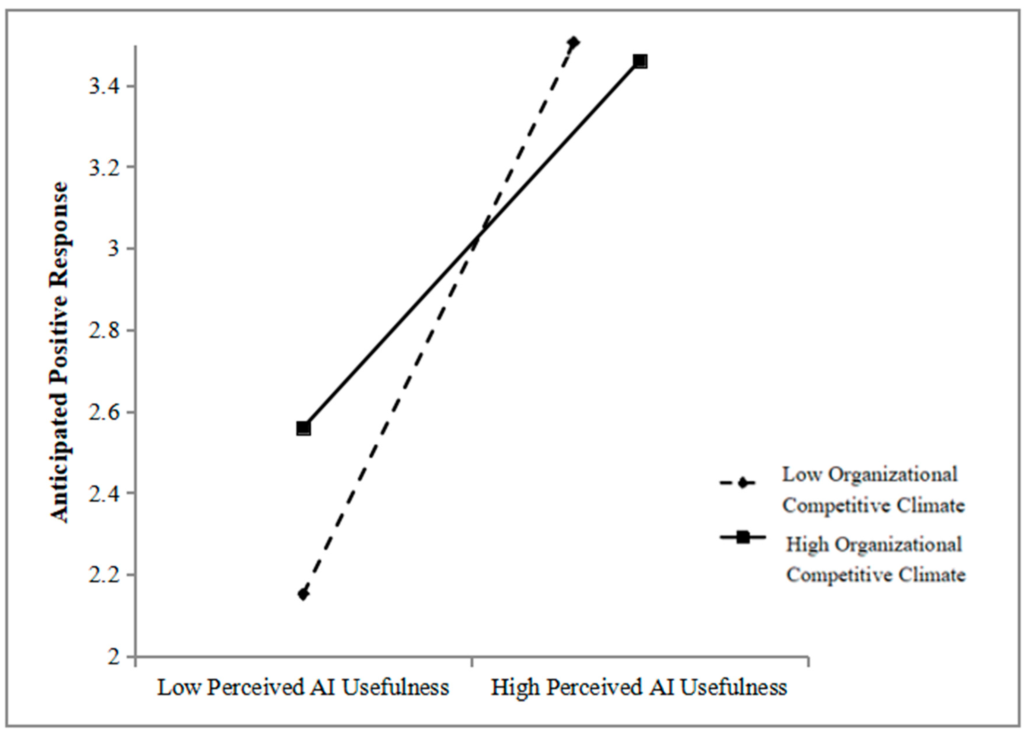 | Perceived AI usefulness × Organizational competitive climate | −0.19 * | 0.08 | [−0.36, −0.03] | |||