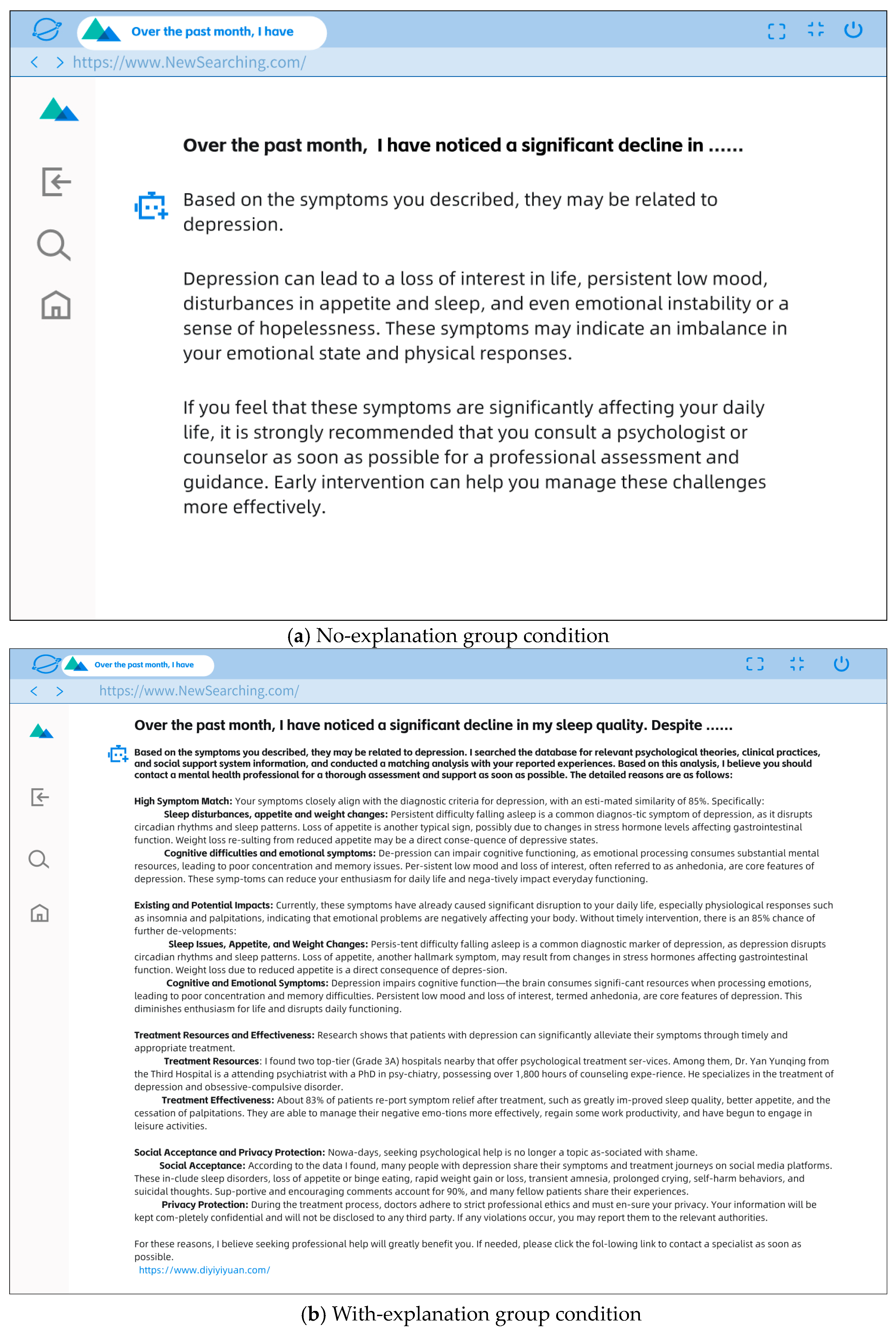 Gao, 2014), an important question arises: Can XAI similarly promote individuals’ professional psychological help-seeking behavior in the mental health context? And through what mechanisms might such effects occur? These issues warrant further investigation.