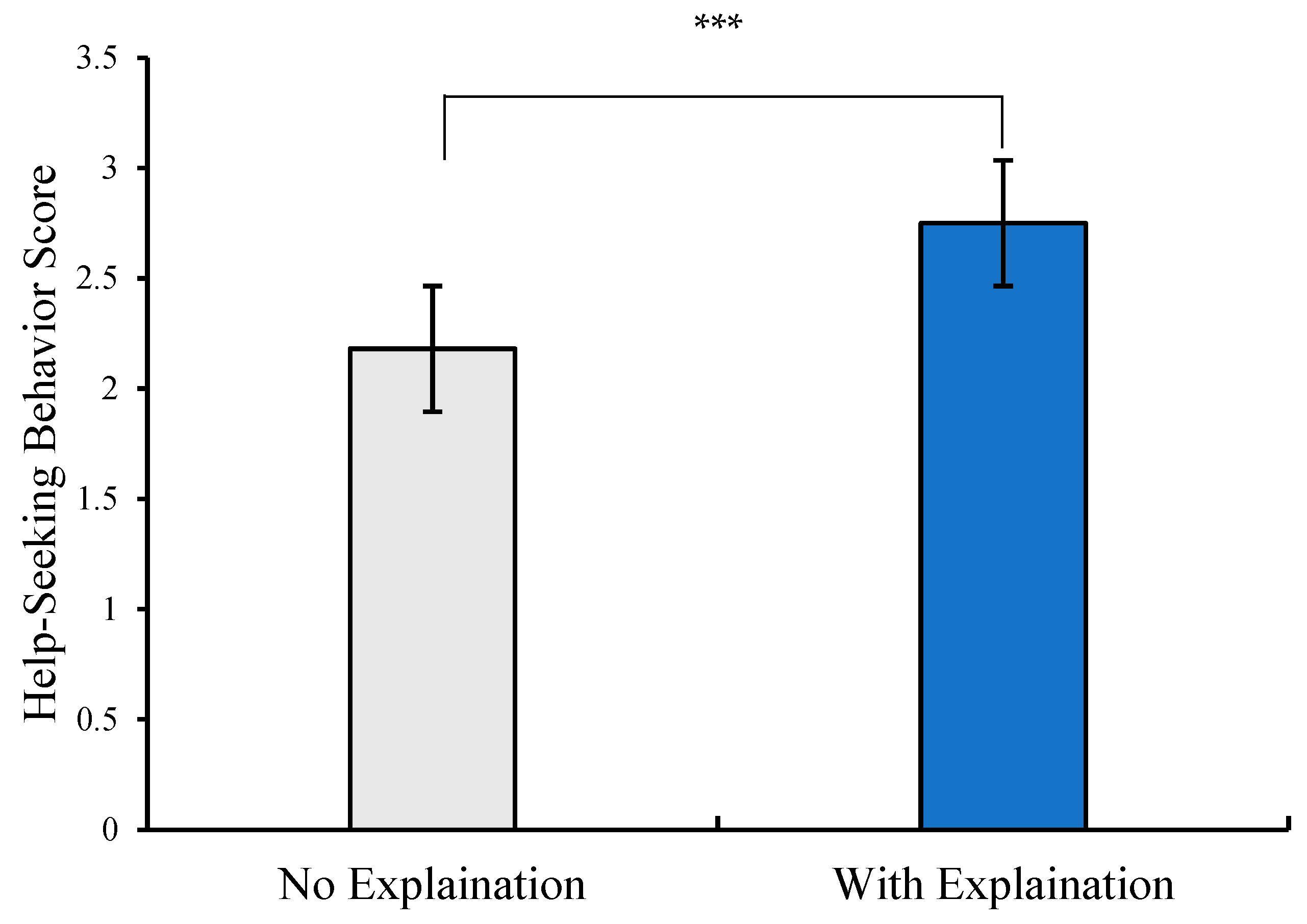 The score differences in problem cognition and help-seeking behavior across different types of explanations (*** p < 0.001).