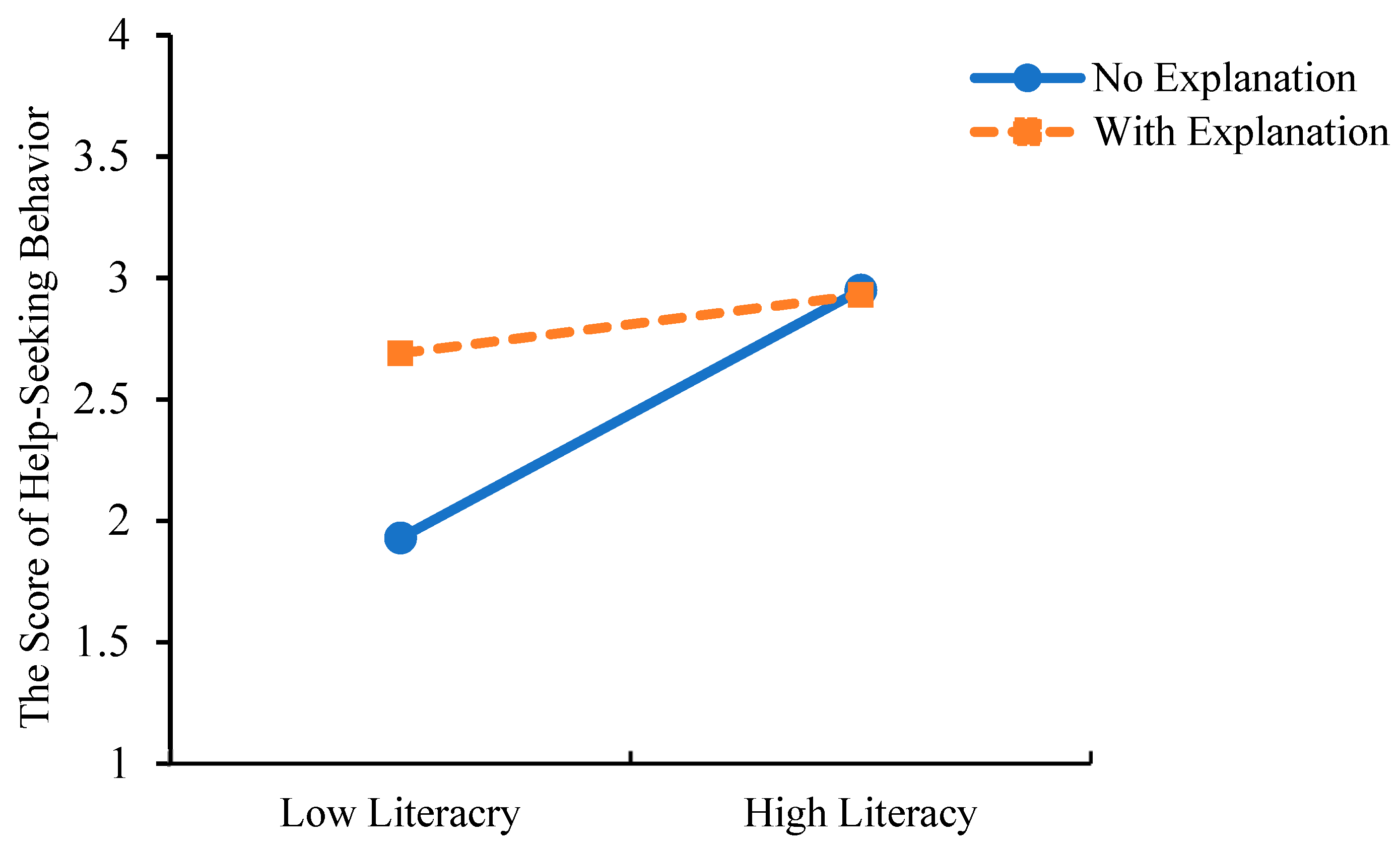 | High Literacy | No-explanation | 5.25 (0.42) | 0.020 | 0.889 | 0.000 |