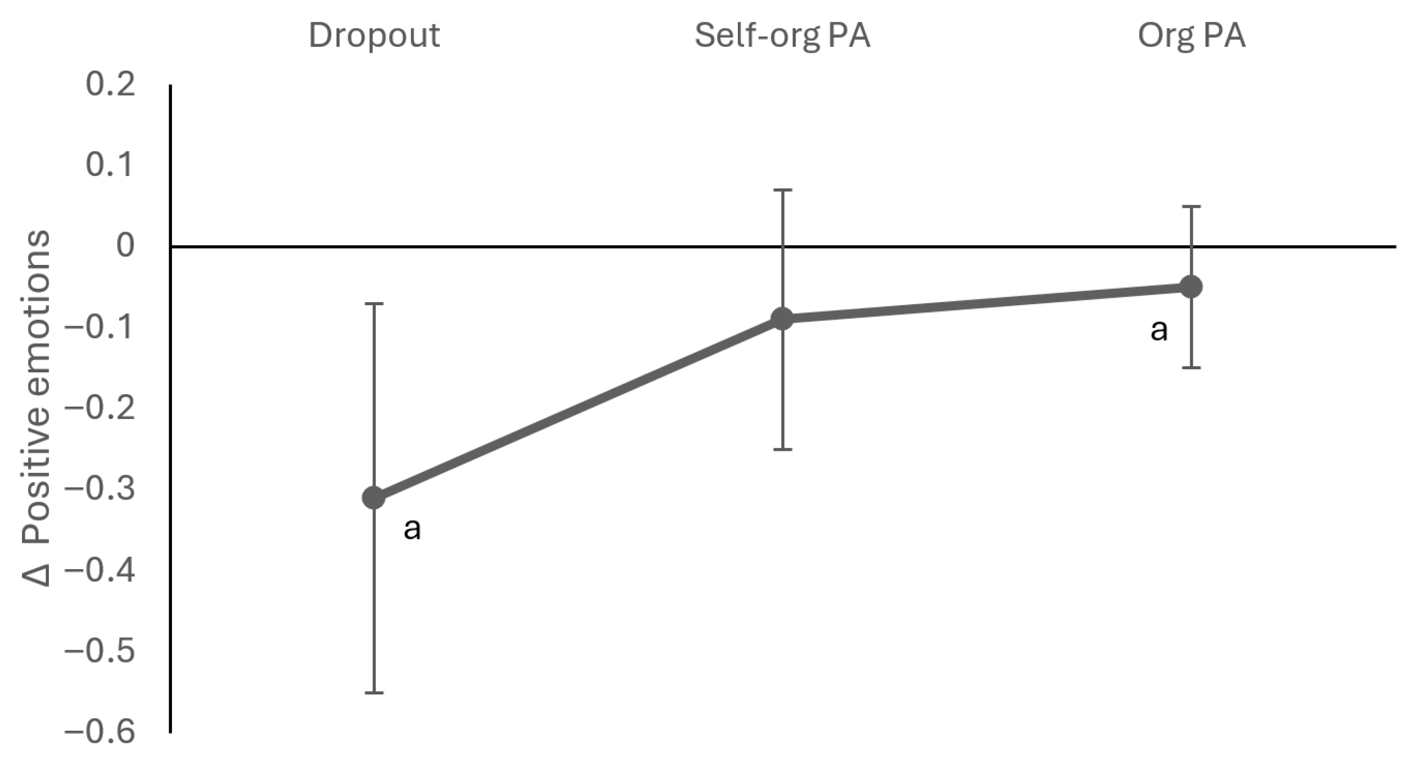 | 6. Positive affects T2 | 5.06 (1.22) | 4.60 (1.26) | 4.83 (1.27) | 5.23 (1.17) | ||||||