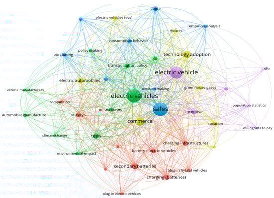 For filtered databases, keyword co-occurrence maps were created to identify thematic branches and connections between articles. The proximity of keywords on the map indicates a strong relationship, while greater distances suggest weaker links (van Eck & Waltman, 2010). Thematic analysis focused on identifying key recurring themes linking research on social cognitive skills in EV sales. The most important terms were recognized by their high co-occurrence, visualized as larger nodes in the bibliographic map (Garcés et al., 2025). Subsequently, interactions or clusters were examined to highlight the most significant relationships between themes and to understand the research field’s structure better. For the results analysis, the selected articles were coded and examined, with thematic analysis supported by word clouds, conceptual networks, and a coding matrix to help compare the findings and produce cross-referenced evidence.