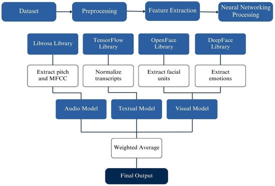 For each sub model—textual, visual, and audio—we process its input data to extract relevant features for training. Due to the unique nature of each modality, we use a specialized feature extraction process for each sub model. The feature extraction processes are detailed below, along with the model architecture for each modality.