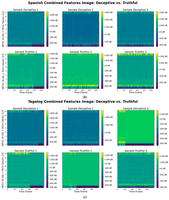 The average clip durations were 25.29 s for English, 23.47 s for Spanish, and 22.27 s for Tagalog, with ranges of 8–48 s, 2–27 s, and 1–27 s, respectively. The clips in both the RealLifeDeception2016 dataset and those manually recorded by our team are labeled at the clip level based on verdicts or corroborating evidence. While a clip may contain a mix of truthful and deceptive statements, features are averaged across the entire segment, consistent with prior research. This approach reflects the realistic setting where deception is often embedded within otherwise truthful narratives.
