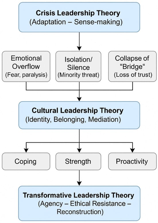 Figure 2 visualizes the flow from crisis response (crisis leadership) through cultural mediation and identity negotiation (cultural leadership) toward ethical and transformational agency (transformative leadership). It portrays leadership not as a static construct but as an evolving process, from emotional shock to reflective action and finally to reconstructive hope.