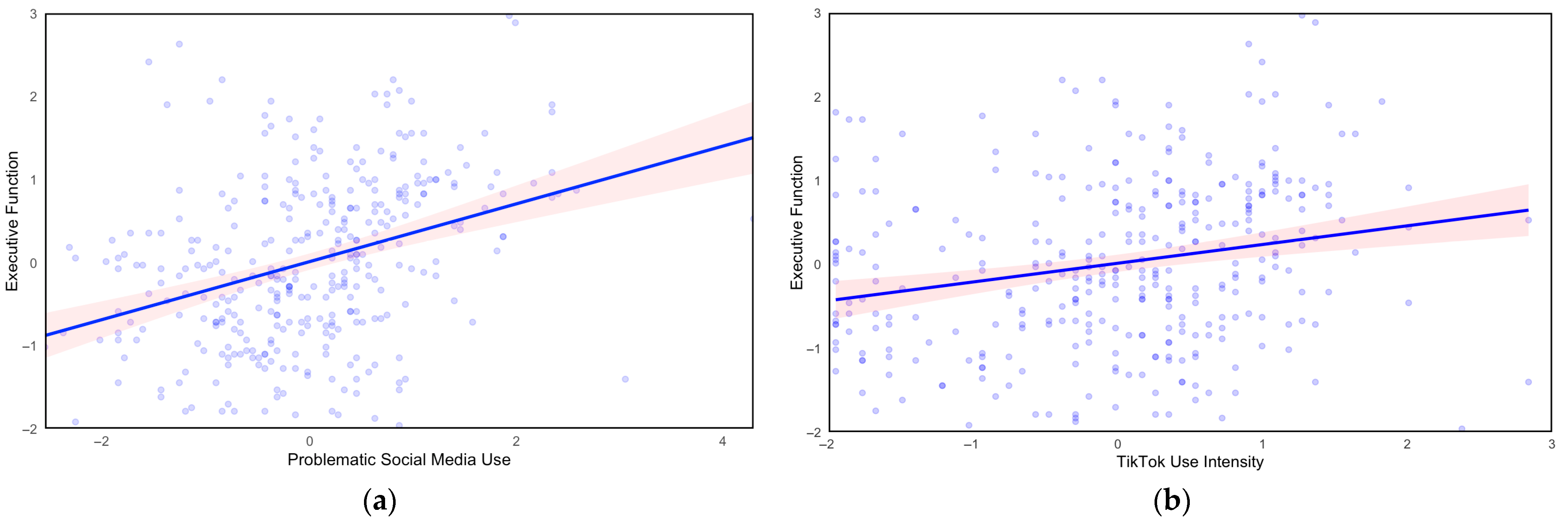 Golding, J.; Rallison, A.; Zhang, K.; Awan, A.; Romero, F.; Lacbain, J.; Lee, S.; Momand, S.; Azer, L.; Zhang, W. The Relationship Between TikTok Usage and Executive Function Is Mediated by Problematic Social Media Use. Behav. Sci. 2025, 15, 1748. https://doi.org/10.3390/bs15121748
