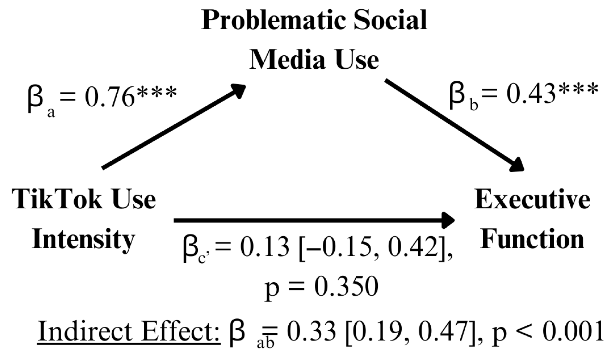 Golding J, Rallison A, Zhang K, Awan A, Romero F, Lacbain J, Lee S, Momand S, Azer L, Zhang W. The Relationship Between TikTok Usage and Executive Function Is Mediated by Problematic Social Media Use. Behavioral Sciences. 2025; 15(12):1748. https://doi.org/10.3390/bs15121748
