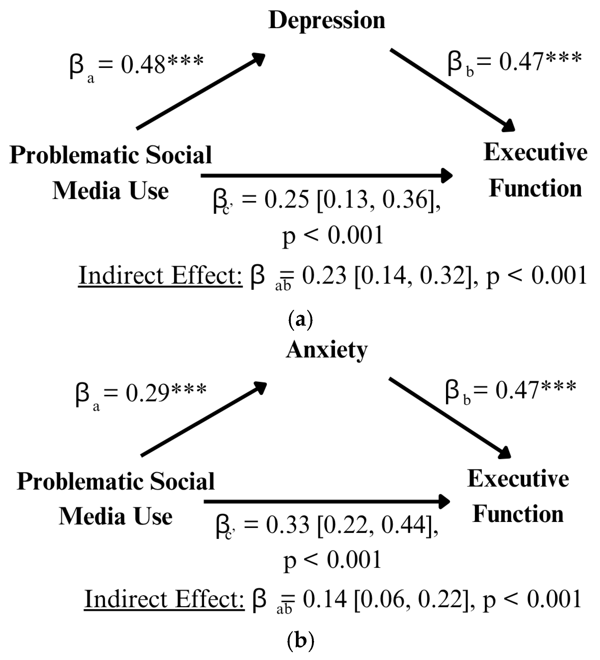- Reed, P. (2023). Impact of social media use on executive function. Computers in Human Behavior, 141, 107598. [Google Scholar] [CrossRef]