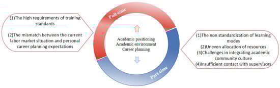 Due to the inherent differences in academic positioning, the academic environment, and career planning (Figure 3), there are significant differences in the anxiety expression and sources between full-time and part-time doctoral students.