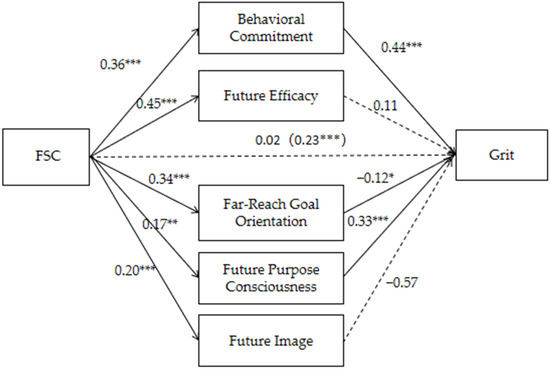 4.4. FSC and Grit: Direct Effect and Mediation Analysis