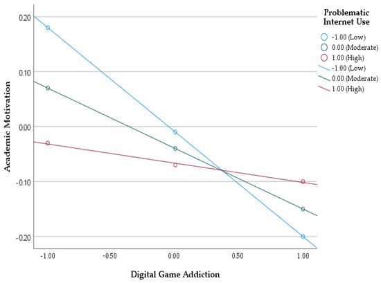 The moderating role of digital game addiction on academic motivation at different levels of PIU.