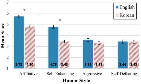 With respect to our second objective, we hypothesized that the American sample would show higher levels of humor use for all four tested dimensions, the two so-called positive dimensions of affiliative and self-enhancing humor styles, and the two so-called negative dimensions of self-defeating and aggressive humor. Our results bore this out only for the two positive dimensions. Korean participants had significantly lower scores on affiliative and self-enhancing humor compared to English L1 participants.