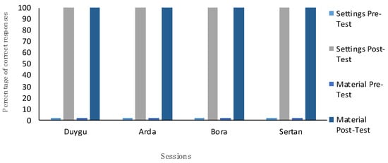 The generalization of skills across different settings was evaluated using a pre–post-test design. This involved conducting a probe session before the intervention process and another after the participants had achieved the unplugged coding skill criterion. The aim was to determine whether the skills learned in the intervention setting could be effectively transferred and applied in different environments or contexts. This aspect of the study was crucial for understanding the real-world applicability and effectiveness of the intervention.