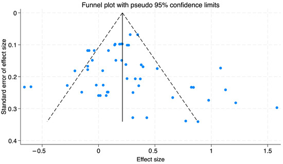 In this study, we employed two methods to identify this study’s publication bias. Initially, we utilized a funnel plot for all the studies to evaluate potential bias visually. The distribution of effect sizes from the 20 included studies displayed a symmetrical shape (see Figure 2), characteristic of nonbiased meta-analytic datasets. This symmetry indicated that the literature included in this study did not have publication bias.